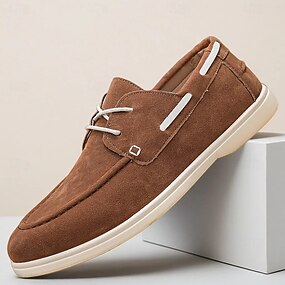 herresko i brunt semsket skinn, snøring, lett, fleksibel såle, klassisk, avslappet stil, egnet for hverdagsbruk og turgåing
