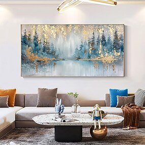 håndlaget oljemaleri lerretsvegg kunst dekorasjon abstrakt knivmaleri landskap blå til hjemmeinnredning rullet rammeløst ustrukket maleri