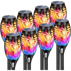 4 stk solar flamme lys vanntett flerfarget plen lys utendørs hage terrasse sti gangvei halloween julefest ferie landskap dekorasjon