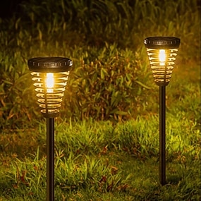 2 stk. utendørs solcelledrevne jernflammelykter, IP65 vanntette, håndholdte &Hengende LED-lamper for hage, terrasse, gjerde, trapp, trinn, plen, gangsti, villa, fest, dekorativ landskapsbelysning