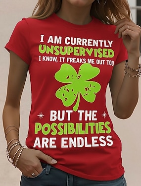 Dame T skjorte T-skjorte عادي Mote Stilfull Klassisk Kortermet Crew-hals Vanlige topper Daglig Ut på byen Helg Blå Svart Hvit Vin Rød Sommer Vår