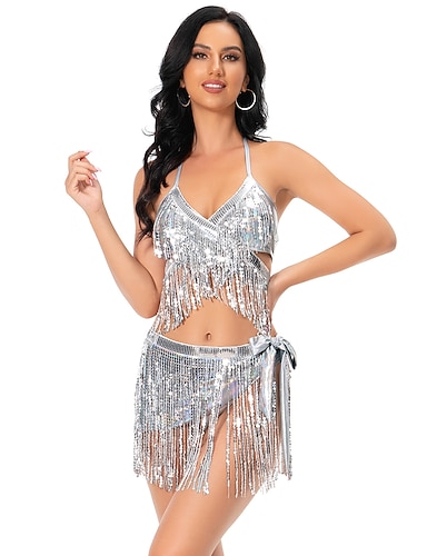 Latindans Danseklær Eksotiske danseklær Kjole Uthult Ren Farge Tvinning Dame Ytelse Trening Ermeløs Høy Paljetter Terylene