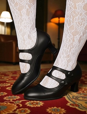 vintage mary jane hæler med dobbel stropp for kvinner – retro pumps med mellomhæl med knappelukking for formell og fritidsklær
