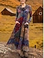 Kvinne Midi Kjole V-Hals Langermet Kaftan Lett Løs Passform A-Linjekjole Hverdags Utgående Blomster Grafikk Langermet V-Hals Klerett Rød Blå Lys Lilla Høst