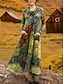 Kvinners Maxi Kjole Kaftan 3/4 Lengde Sleeve Crew Neck Casual Shift Kjole A-Line Kjole Kjole Boho Daglig Ferie Date Regular Fit Grafisk Geometrisk Abstrakt Gul Blå Grønn Vår