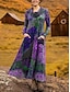 Kvinners Maxi Kjole Kaftan 3/4 Lengde Sleeve Crew Neck Casual Shift Kjole A-Line Kjole Kjole Boho Daglig Date Gå ut Geometrisk Mørk Brun Gul Rød Lilla