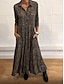 Kvinne Midi Kjole V-Hals Langermet Kaftan Lett Løs Passform A-Linjekjole Hverdags Boho Utgående Løs Passform Grafikk Langermet V-Hals Svart Blå Orange Khaki