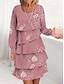 Dame Mini kjole Tubekjole Fritid Daglig Normal Blomstret Langermet Høyhalset Rød Vår Høst