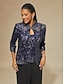 Dame Bluse 2 stk antrekk Dressy topper Blomstret Elegant 3/4 ermer Kinesisk Krave Vanlige topper Aftenselskap Paljetter Broderi Navyblå Vår Høst Vinter