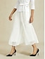Dame Bred Bukseben Rett Elegant Ankel-lengde Medium Midje Elastisk midje Elastisk Avslappet Daglig Bryllup Hvit Sommer Vår Høst