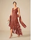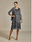 dame midikjole chiffonkjole paljetter elegant bryllupsgjest kveldsfest normal passform ensfarget 3/4-ermet rund hals rosa sommer vår høst vinter