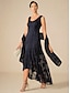 Dame A-linje Elegant Fritid Midi Medium Midje Skjørt Blomstret Blonde Drapering Uregelmessig hem Mikroelastisk Stevnemøte Fritid / hverdag Navyblå Vår, Høst, Vinter, Sommer Polyester