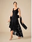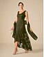 dame maxikjole A-linjekjole paljetter brodert tyllkjole elegant fest kveldsfest normal passform blad 3/4-ermet V-hals svart vår høst vinter