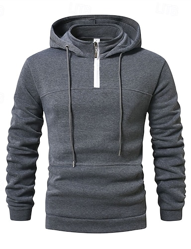 Herre Hattetrøje Hettegenser med knapp Svart Hvit Navyblå Kakifarget Grå Med hette Fargeblokk Snorer Lomme Sport & Utendørs Daglig Ferie Polyester Gatemote Grunnleggende Fritid Vår Høst Klær Gensere