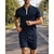 Herre Joggedress Treningsdrakter Sett med poloskjorter og shorts Snorer 2 deler Ensfarget T-skjorte og joggebukse Atletisk klesett Sommer Vår Svart Hvit Treningsøkt Jogge Løp Fukttransport Pustende