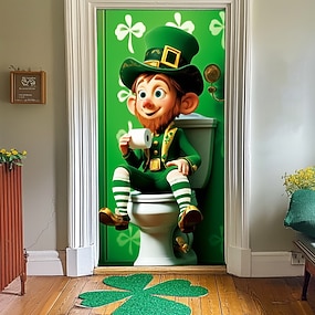 Dørgardin til St. Patricks dag, leprechaun-design, grønt irsk tema, festlig døråpningsdekorasjon til St. Patricks dag-feiring og hjemmedekor.