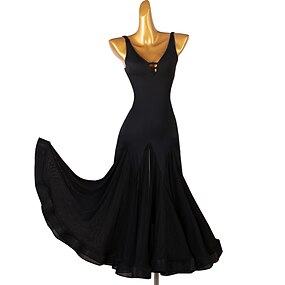 Ballroom-dans Kjole Kombinasjon Ren Farge Dame Trening Ytelse Ermeløs Chinlon Chiffon