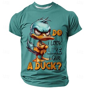 Herre Dyr Morsom And Grinete T skjorte Kortermet T skjorte 3D-utskrift Crew-hals Skjorte overdrevet Designer Fest Ferie Hvit 1 Kakifarget Hvit 2 Sommer Vår Klær S M L XL XXL XXXL