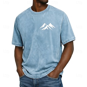 herre minimalistisk fjelltopper syrevasket vintage streetwear t-skjorte grafisk lite brysttrykk korte ermer fritidsklær hverdagsbruk designerklær s m l xl xxl xxxl