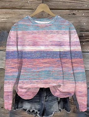 Dame T skjorte Trykt mønster Grafisk Geometrisk Stripet Årgang Mote Stilfull Langermet Crew-hals Rund hals Vanlige topper Daglig Helg Brun Høst Vinter