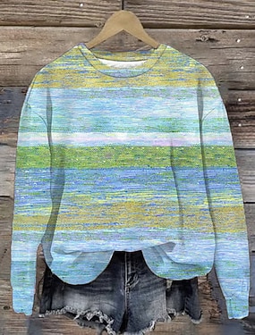 Dame T-skjorte Lang Erm Crew Neck Lang Erm Tunika Ombre Nydelig Vanlig Topper Daglig Print Rosa Blå Lilla Grønn Vår Høst Prefall