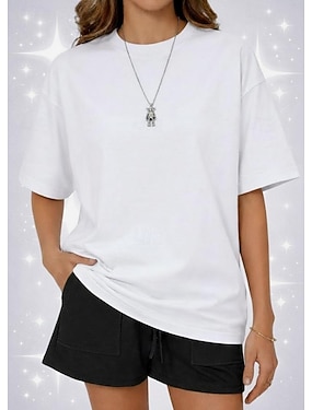 Dame Store T-skjorter 100 % bomulls-T-skjorte Helfarge Mote Klassisk Fritid Kortermet Crew-hals Rund hals Vanlige topper Daglig Sport Ut på byen Salvie Grøn Svart Hvit Gul Rosa Sommer Vår