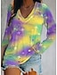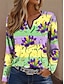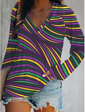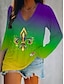 Mardi gras Dame T skjorte Trykt mønster Grafisk Geometrisk Gradert Elegant Stilfull Klassisk Langermet V-hals Vanlige topper Daglig Ut på byen Helg Gul Lilla Grønn Sommer Vår Høst