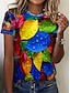 Dame T skjorte Trykt mønster Nyanse Grafisk Bohem Hawaiisk Stilfull Kortermet Crew-hals Vanlige topper Daglig Blå Rosa Lilla Sommer Vår
