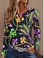 St. Patricks dag kvinnelig T-skjorte blomster grafikk planter elegant vintage stilige langermede V-hals vanlige topper daglig utgang helg trykk blå svart hvit grønn grå vår vinter