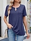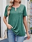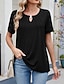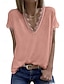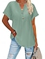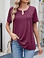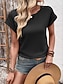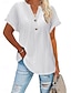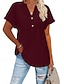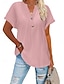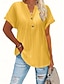 Dame T skjorte Bluse T-skjorte Lapper Knapper عادي Elegant Ferie Mote Kortermet V-hals Vanlige topper Daglig Ferie Ut på byen Svart Hvit Gul Rosa Vin Sommer Vår