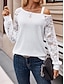 Dame Blondeskjøtetopp Broderi Snørehull Helfarge Mote Fritid Langermet Enskuldret Løse skuldre Vanlige topper Daglig Ut på byen Hvit Vår Høst Vinter
