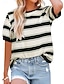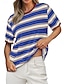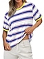 Dame Bluse Lapper Stripet Stilfull Moderne Fritid Kortermet Crew-hals Vanlige topper Daglig Ferie Ut på byen Blå Svart Lilla Grønn Sommer Vår