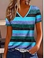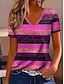 Dame T skjorte Trykt mønster Stripet Stripet Bohem Årgang Stilfull Kortermet V-hals Vanlige topper Daglig Blå Rosa Sommer Vår