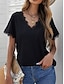 Dame T skjorte Blondeskjøtetopp T-skjorte Blondestrim Helfarge Stilfull Klassisk Fritid Kortermet V-hals Vanlige topper Daglig Ut på byen Helg Svart Hvit Rosa Grå Lyseblå Sommer Vår