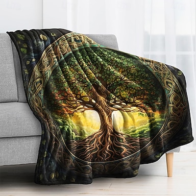 tapet Teppe Fleece-tepper Livets tre 3D Fantasi Soverom Sofa Seng Dekorativt teppe Varmt teppe Hjemmedekor