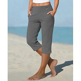 Dame Capri-bukser Bukser Koselige leggings Ferie Grunnleggende Fritid Kalv lengde Naturlig عادي Sidelommer Delt comfy Komfort Pustende Høy Elastisitet Feriereise Yoga- og dansesko Gate Navybl