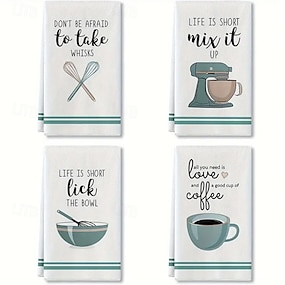 4-delers kreativt kjøkkenhåndklærsett med trykk, oppvaskkluter for matlaging, baking, rengjøring, multifunksjonelle kjøkkenhåndklær, kjøkkenutstyr og romdekorasjon