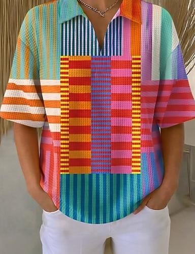 Dame Skjorte Grafisk Geometrisk Stripet Årgang Tropisk Stilfull Ermeløs Kortermet Skjortekrage Lange topper Daglig Blå Svart Rosa Oransje Grønn Sommer Vår