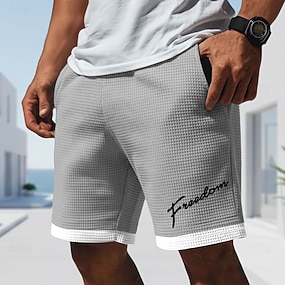 Herre bokstavtrykk Morsom Slang Vaffelshorts Casual shorts Teksturerte shorts Medium Midje Fashion Casual Daglig Feriereise Elastisk snøring i midjen Shorts med lommer Designer Klær