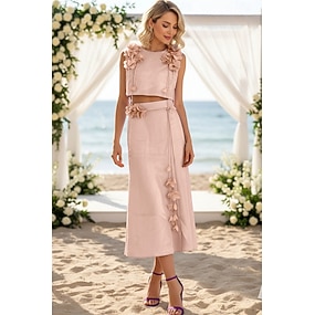Todelt A-linje Ankellengde Gjestekjoler til bryllup Elegant Ermeløs Crew-hals Bryllup Valentinsdag med 3D-blomster