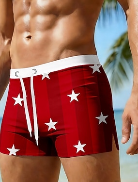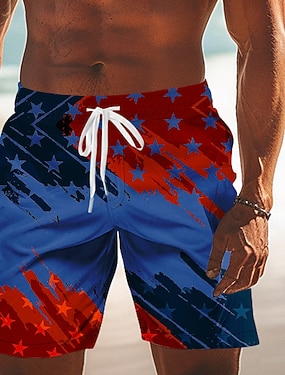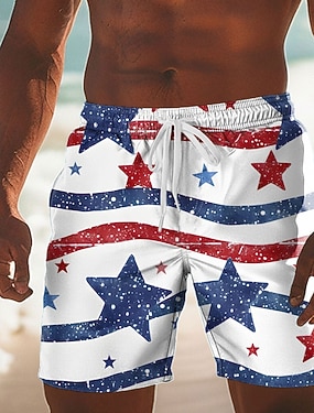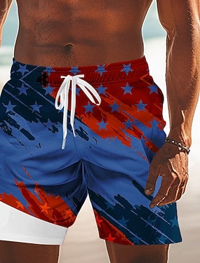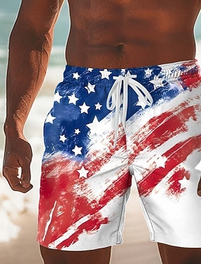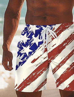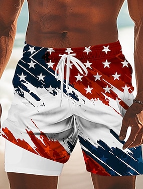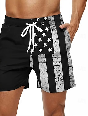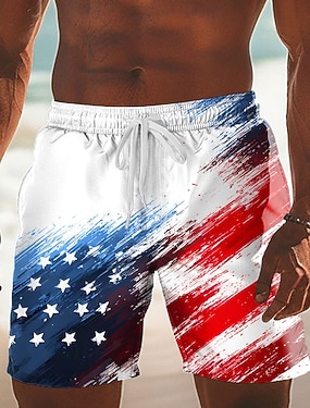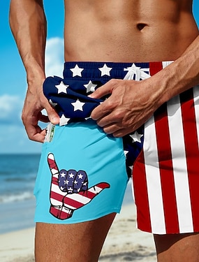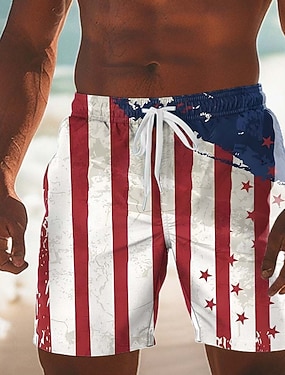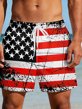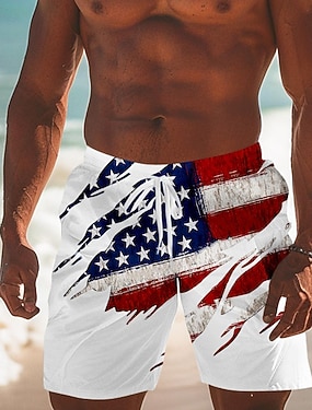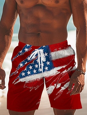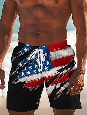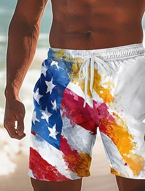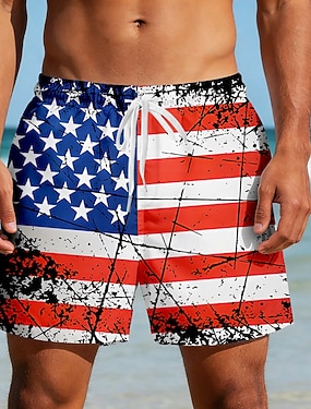 Uavhengighetsdag Herre US Flag Patriotisk Fjerdedag Juli Badebukser Badetøy Styrebukser Mid Liv Hawaii Ferie Side Lommer Nettfôr Elastisk Snøring Liv