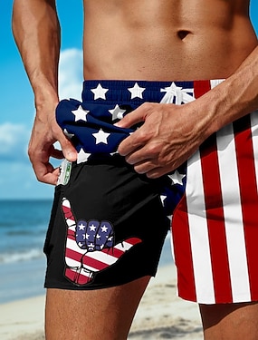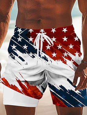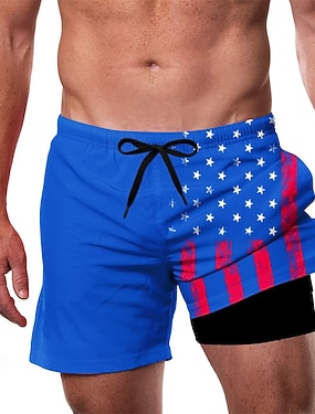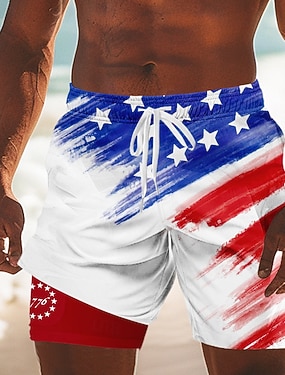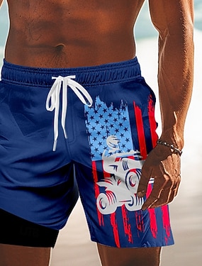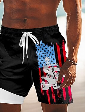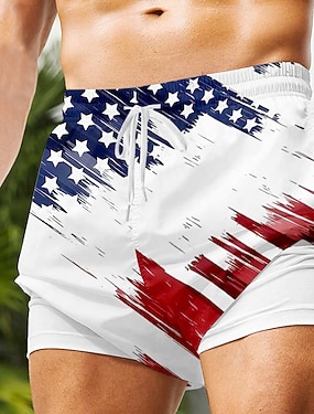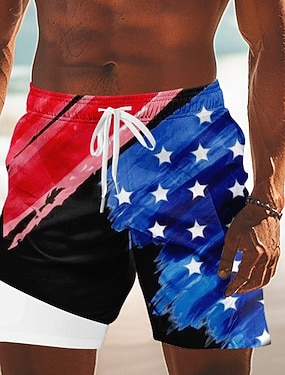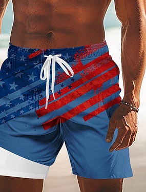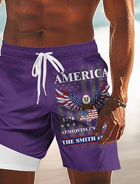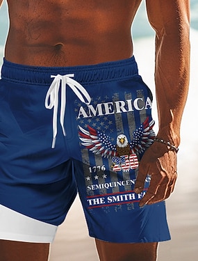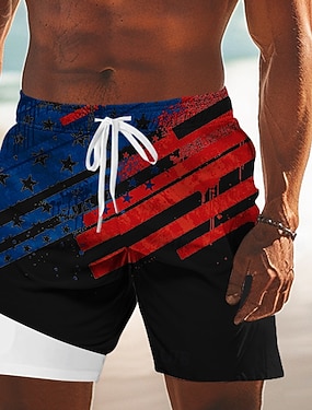 Uavhengighetsdag Herre US Flag Patriotisk 1776 Fôrede Bukser 2 i 1 Styrebukser Badebukser Mid Liv Ferie Side Lommer Med Kompresjonsfôr Elastisk Snøring Liv