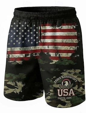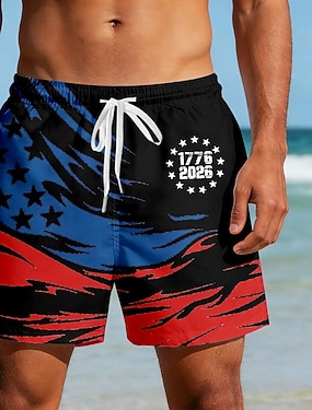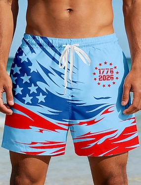 Herre Flagg 4. juli USAs 250-årsjubileum Amerikansk flagg Surfeshorts Badeshorts Shorts Medium Midje Mote Gatemote Hawaiisk Avslappet Daglig Gateklær Snorer Lomme Elastisk midje Designer Klær