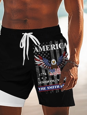 Uavhengighetsdagen Herre 4. juli USAs 250-årsjubileum Ørn Patriotisk Fôret shorts 2 i 1 svømmeshorts Badeshorts Medium Midje Ferie Sidelommer Med kompresjonsforing Elastisk snøring i midjen Designer
