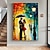 julegave håndlaget oljemaleri fargerik byvandring lerretsmaleri romantisk par kunst abstrakt lerret regnfull gatelys veggdekor moderne impresjonistisk veggkunst gave
