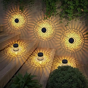 Solar Vegglampe Metall Lantern Solenergi Utendørs Terrassetrinn Lys Mandala Tema Vanntett LED Solar Landskapsprosjektor Lys Hage Søyler Terrasse Hageinnredning
