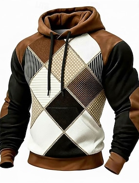 Herre Geometrisk Ruter Hattetrøje Genser Mote Daglig Langermet Crew-hals Hjem Gateklær Fest Blå Brun Grønn Grå Snorer Høst Vinter Designer S M L XL XXL XXXL