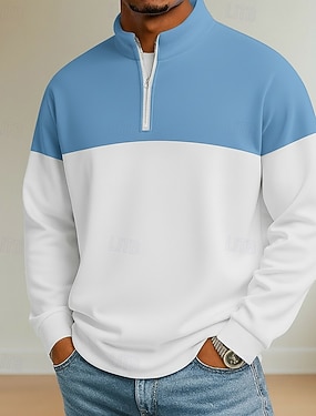 Herre Fargeblokk Poloskjorter med glidelås Langermet Poloskjorter bestefars krage Fritid Skole treningsklær Ferie Dagligdagstøy 3D-utskrift Kvart zip-polo Vår Høst Blå Navyblå Himmelblå
