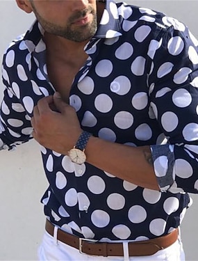 Herre Geometrisk Linje Polo Langermet Poloskjorter Knaphul Business Casual treningsklær Dagligdagstøy 3D-utskrift Knapper Vår Høst Vinter Svart Blå Oransje