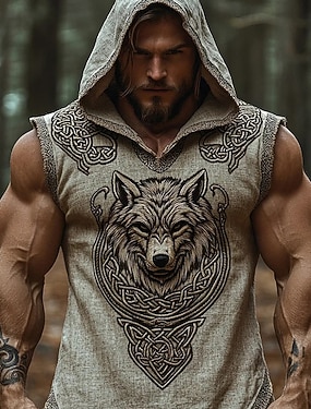 Herre Singleter Vest topp Underskjorte Ermeløs skjorte Ermeløs Med hette Sommer Ulv Årgang Designer Grunnleggende Trykt mønster Feriereise Gate Ut på byen Svart Blå Grå Topp T-skjorte for menn